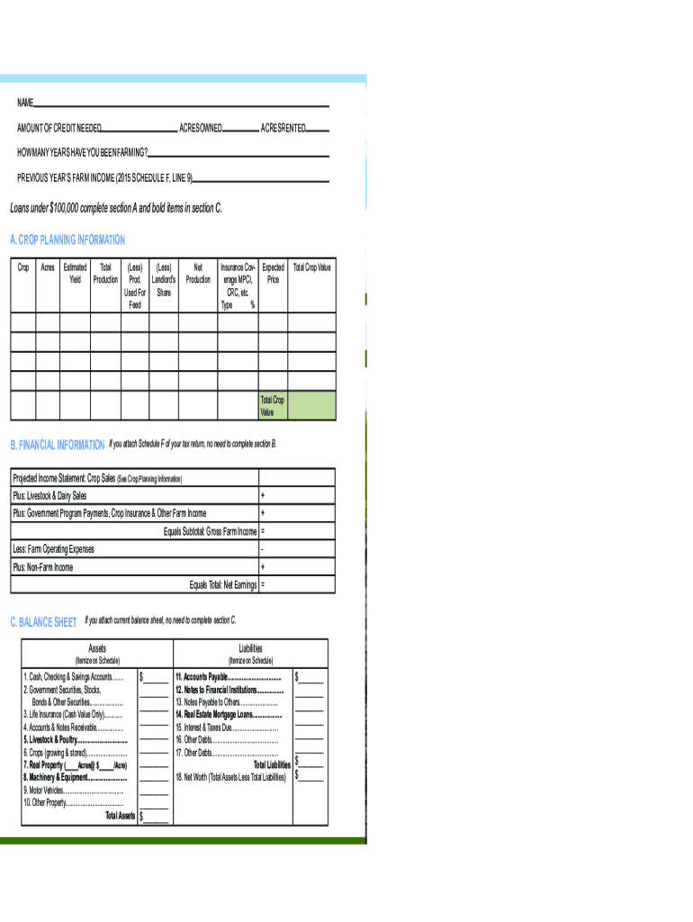 AMOUNT OF CREDIT NEEDEDACRES OWNEDACRES RENTED MANY YEARS HAVE YOU BEEN FARMING?