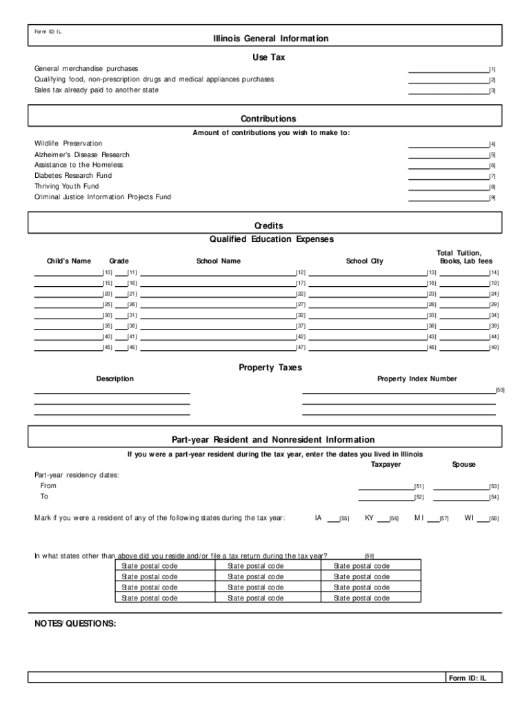 Form ID: IL Illinois General Information Use General merchandise purchases Qualifying food, nonprescription drugs and medical appliances purchases Sales tax already paid to another state[1] [2] [3]Contributions
