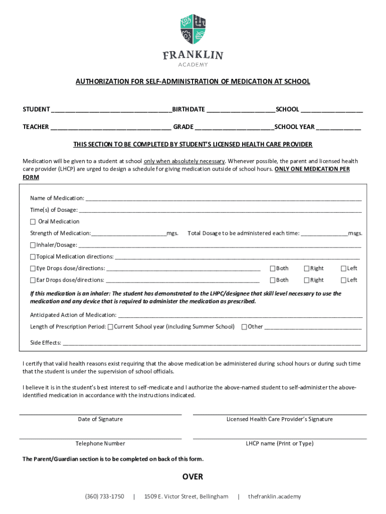 AUTHORIZATION FOR MALADMINISTRATION OF MEDICATION AT SCHOOLSTUDENT ___BIRTHDATE ___SCHOOL ___ TEACHER ___ GRADE ___SCHOOL YEAR ___ THIS SECTION TO BE COMPLETED BY STUDENTS LICENSED HEALTH CARE PROVIDER