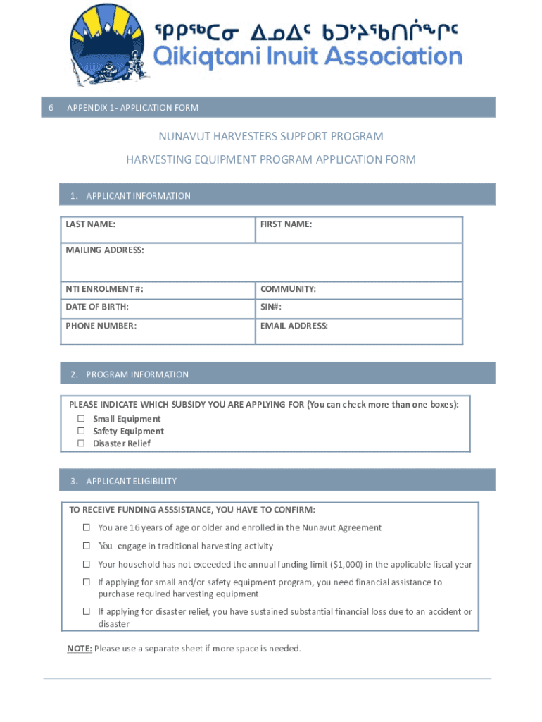 Inuit harvesters who wish to receive support under the Nunavut Harvesters Support Program must file an application. This includes individuals who engage in harvesting activities for personal use or for commercial purposes.