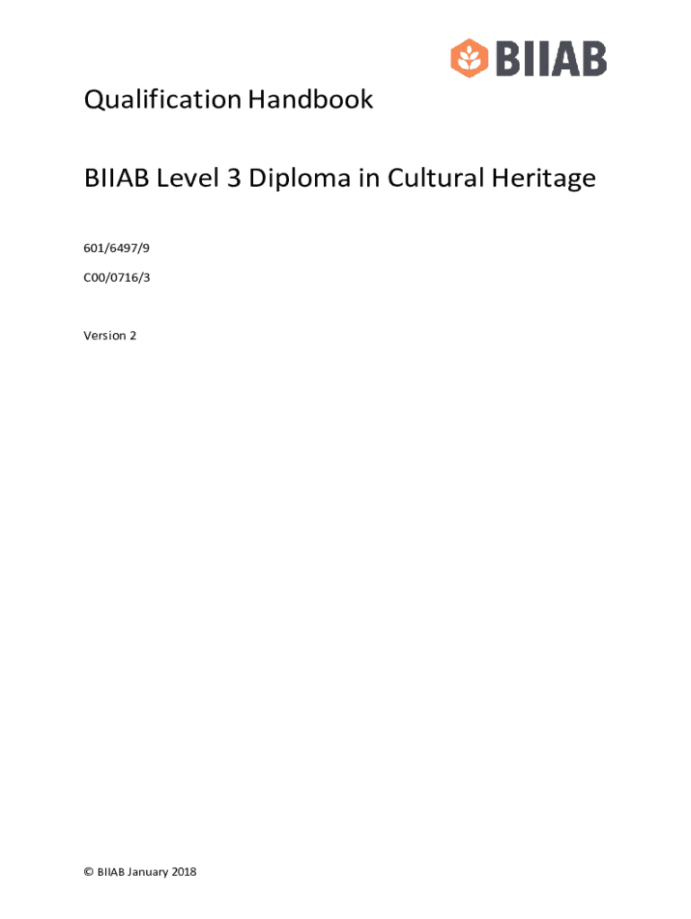 Get the free Qualification Handbook BIIAB Level 3 Diploma in Cultural ...