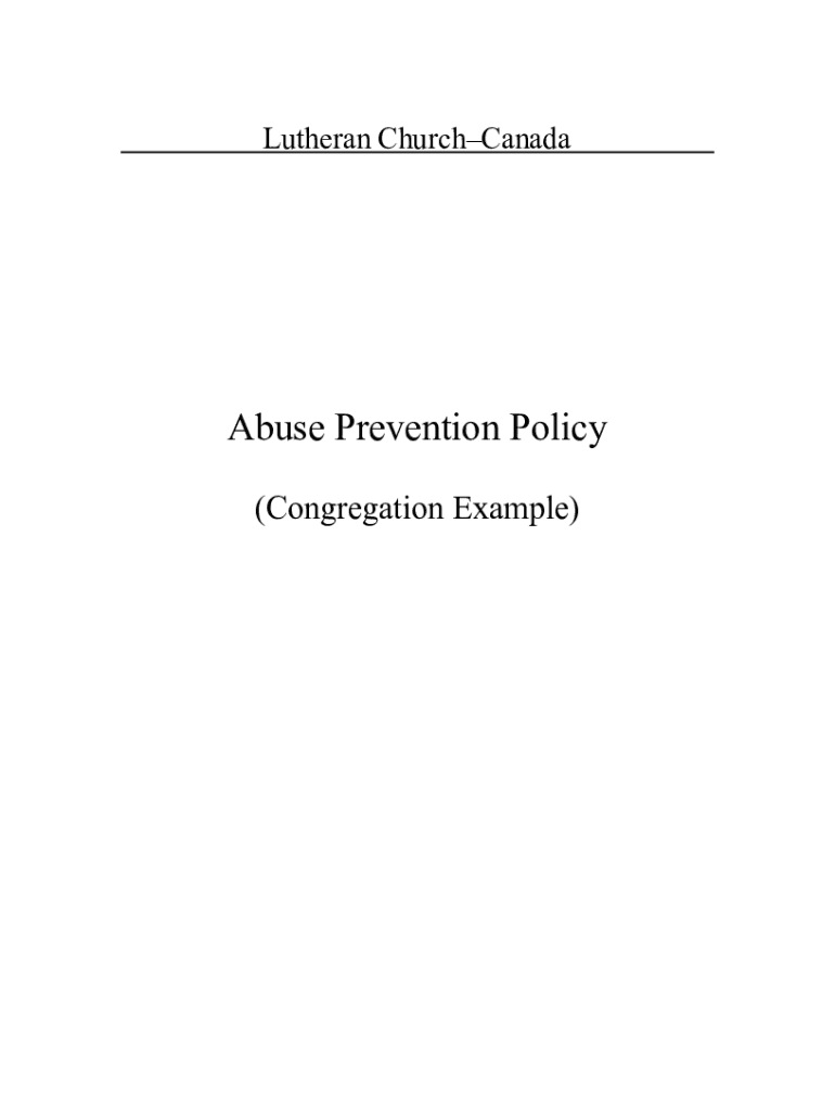 Lutheran ChurchCanadaAbuse Prevention Policy (Congregation Example)Table of Contents A. Need for a Policy...........................................................................................................