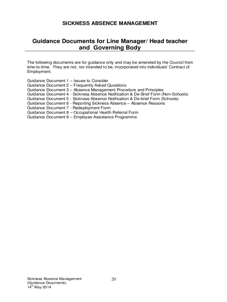 SICKNESS ABSENCE MANAGEMENTGuidance Documents for Line Manager/ Head teacher and Governing Body The following documents are for guidance only and may be amended by the Council from Théotime. They
