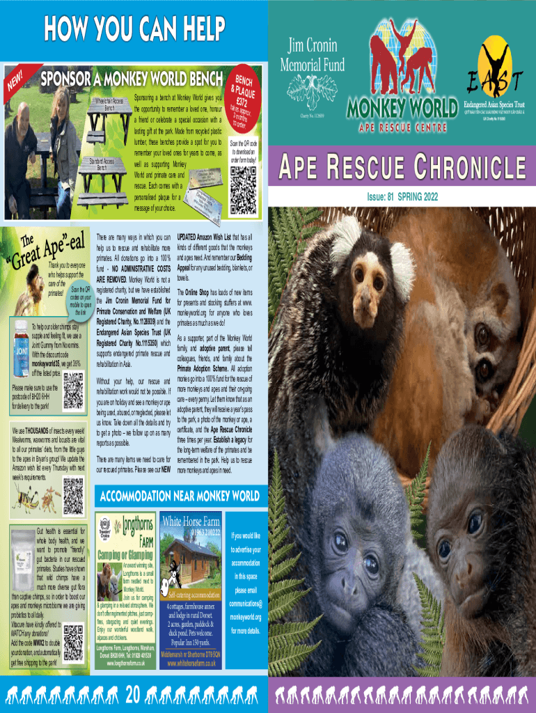 HOW YOU CAN HELP W! EN SPONSOR A MONKEY WORLD BENCH Wheelchair Access BenchStandard Access Benchmark you to everyone who helps support the care of the Scan the QR primates! Codes on your mobile to