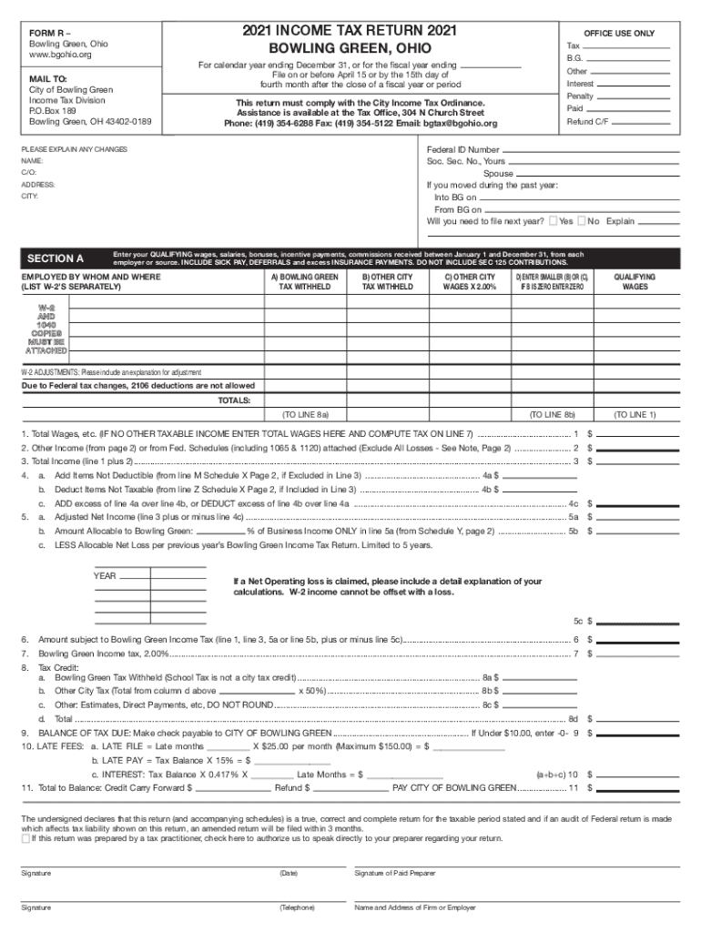 Get the free 2021 INCOME TAX RETURN 2021 BOWLING GREEN, OHIO