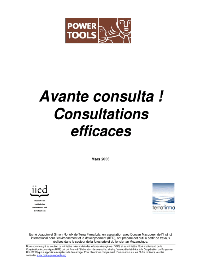 Av ante consult ! Consultations efficacy Mars 2005Esm Joaquim et Simon Norfolk de Terra Firm LDA, en association Alec Duncan McQueen de institute international pour environment et LE development (DIED),