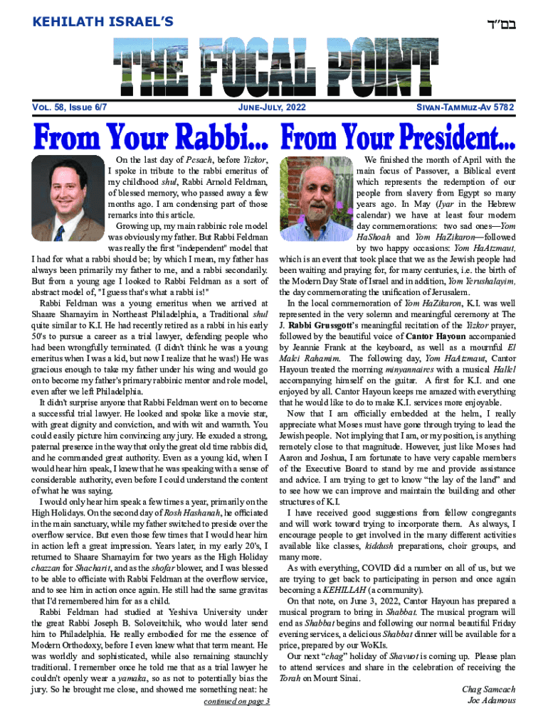 DELILAH Israels. 58, Issue 6/7JuneJuly, 2022On the last day of Peach, before Minor,