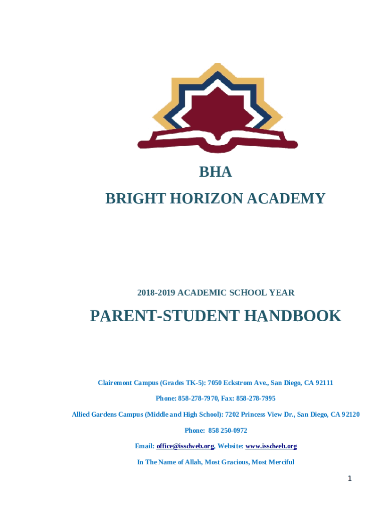 Bright Horizon Academy/Islamic School of San Diego word template: frequently asked questions