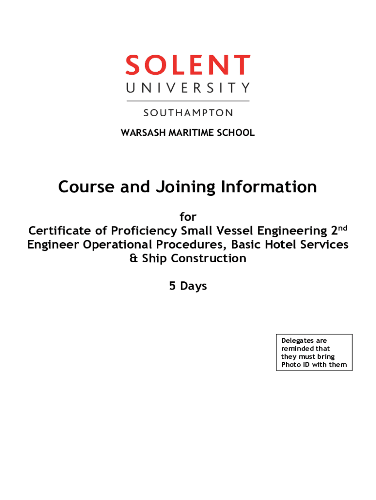 Certificate of Proficiency Small Vessel Engineering 2nd