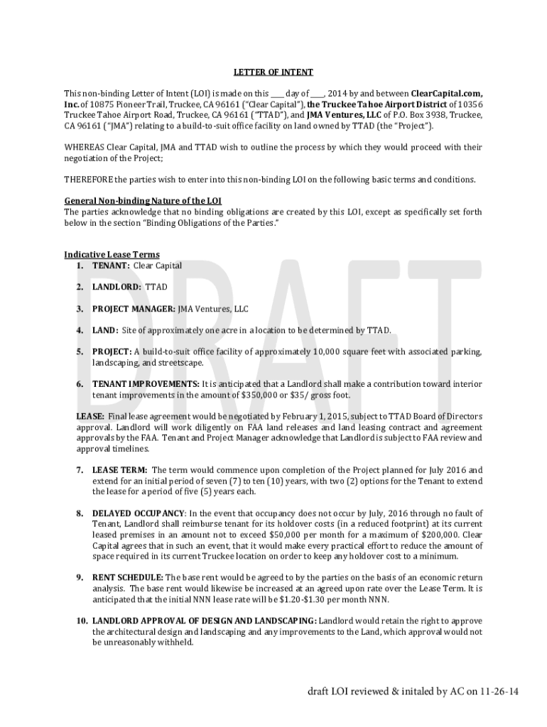 Get the free Non-Binding Letter of Intent Sample Clauses - Law Insider