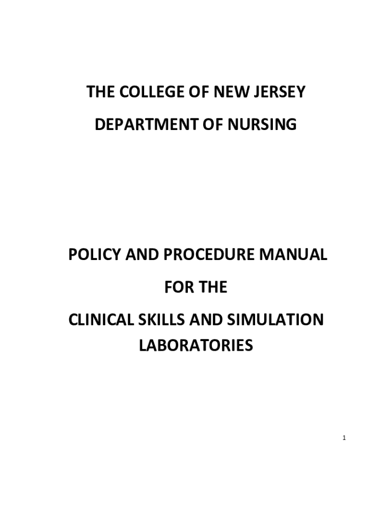 THE COLLEGE OF NEW JERSEY DEPARTMENT OF NURSINGPOLICY AND PROCEDURE MANUAL FOR THE CLINICAL SKILLS AND SIMULATION LABORATORIES1TABLE OF CONTENTS Mission statement. . . . . . . . . . . . . . . . .