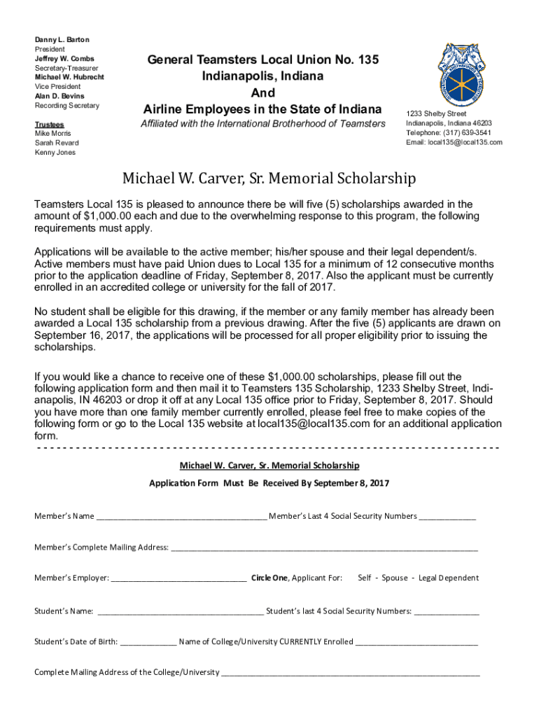 Get the free General Teamsters Local Union No. 135 Indianapolis, Indiana