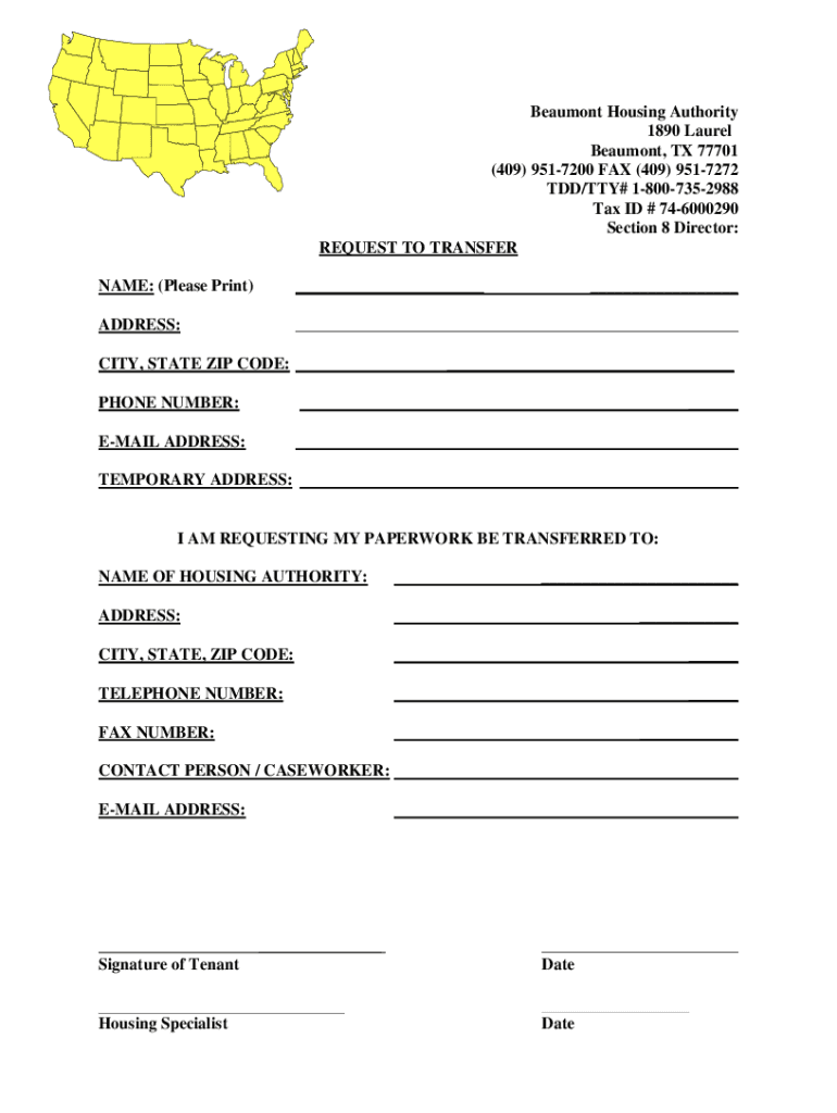 Get the free Portable Request to Transfer - Beaumont Housing Authority