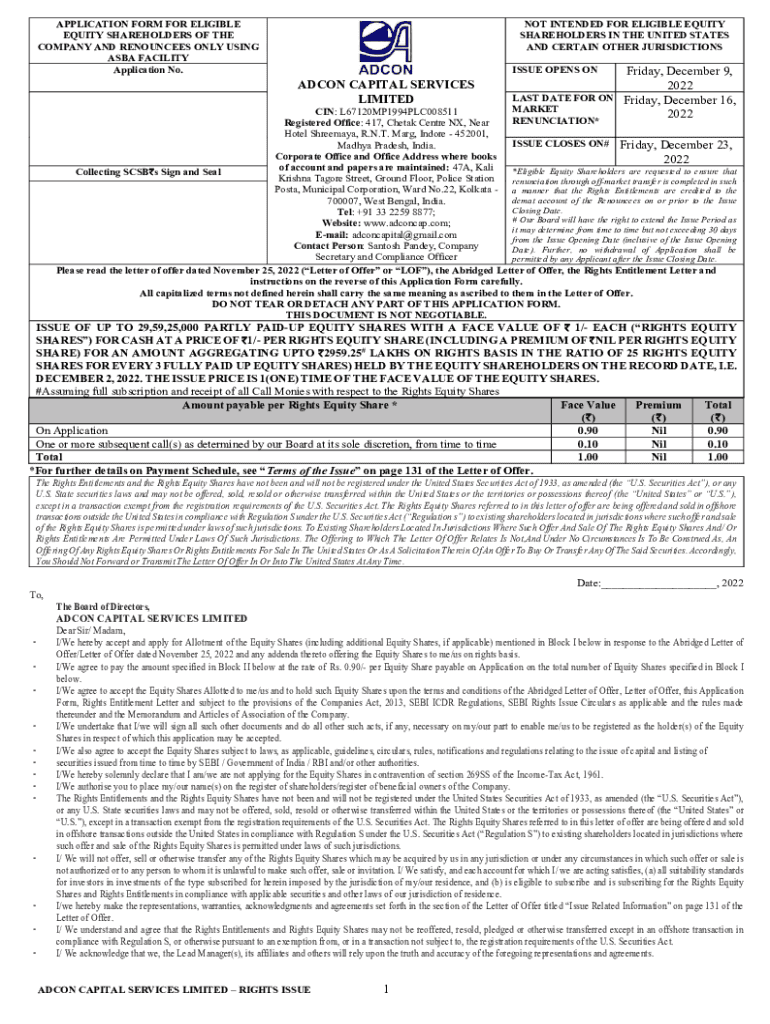 APPLICATION FORM FOR ELIGIBLE EQUITY SHAREHOLDERS OF THE COMPANY AND RENOUNCES ONLY USING ASIA FACILITY Application No. NOT INTENDED FOR ELIGIBLE EQUITY SHAREHOLDERS IN THE UNITED STATES AND CERTAIN