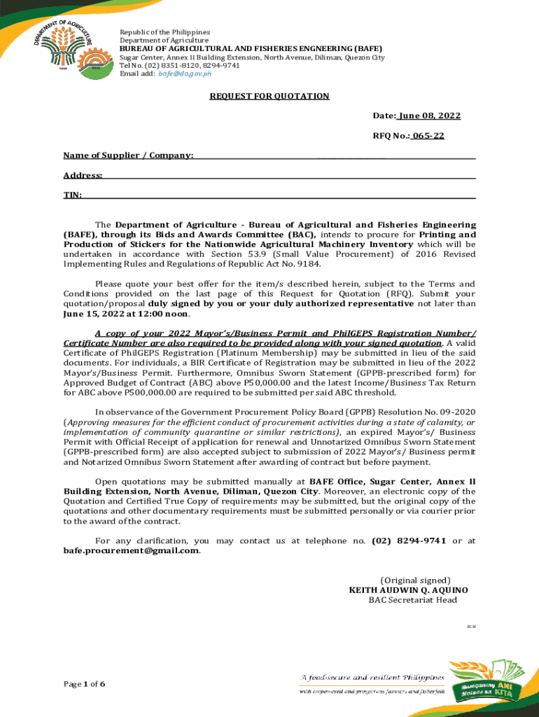 Get the free (BAFE), through its Bids and Awards Committee (BAC), intends to procure for Printing...