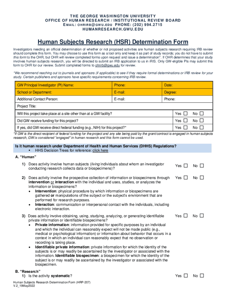 T H E GE OR GE W A S H IN GT ON U N FIVE R S IT Y OFFICE E OF H U MA N R E S E A R C H / IN ST IT UT ION A L R E V IE W B OA RD E M A I L : O H R I R B @ G W U. E D U P H ON E : (202) 994 .2 715 H