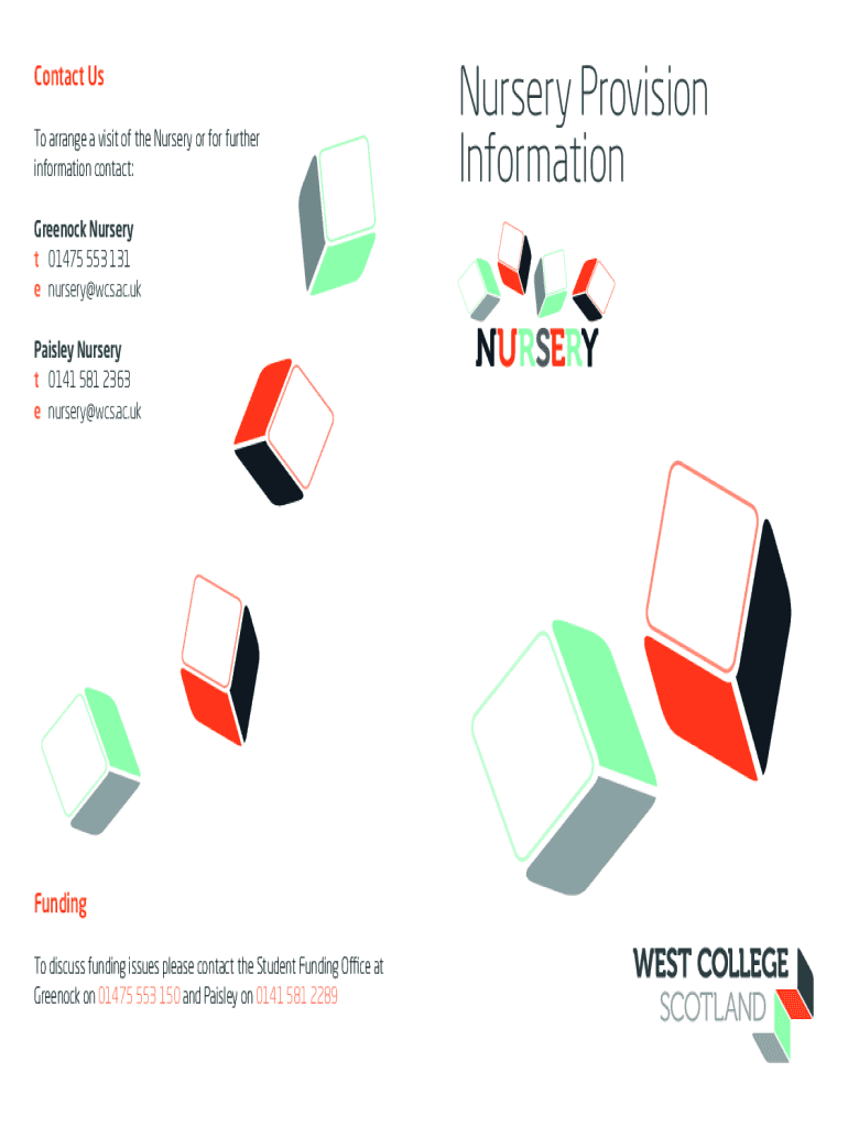 Contact Us To arrange a visit of the Nursery or for further information contact: Greenback Nursery t01475 553 131 enursery@wcs.ac.uk Paisley Nursery t0141 581 2363 enursery@wcs.ac.ukFunding To discuss