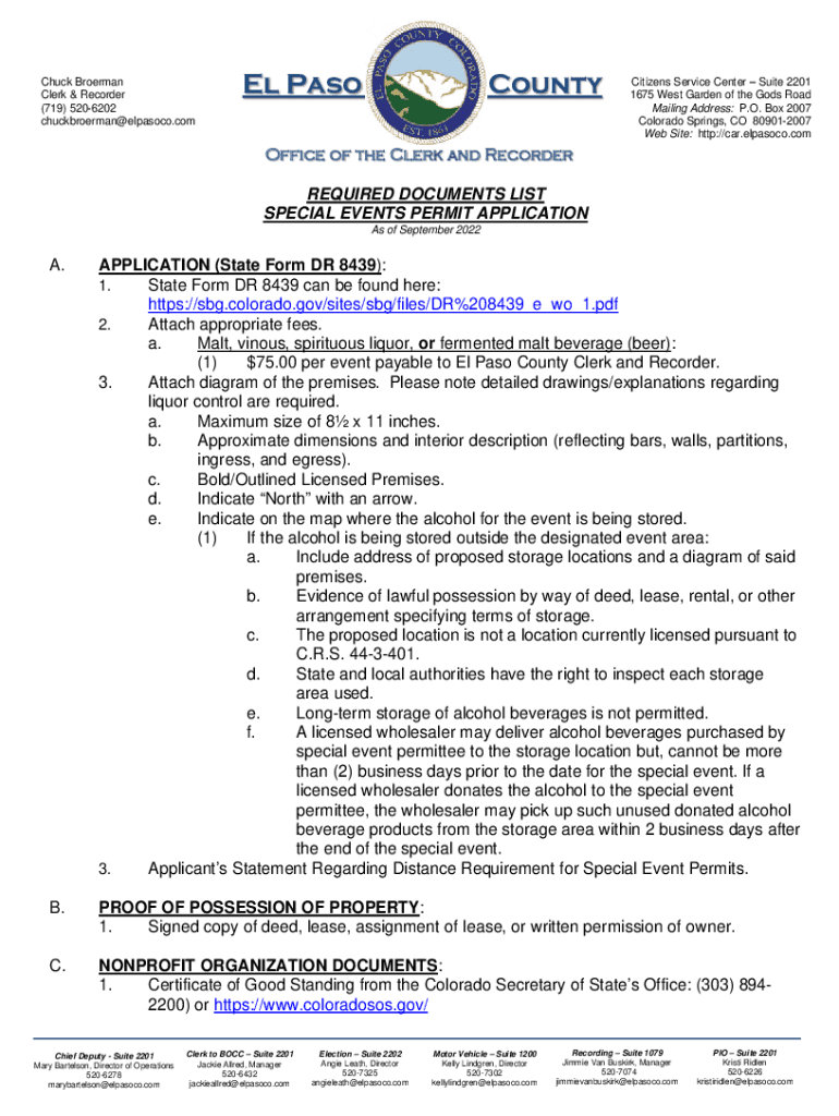 Chuck Berman Clerk & Recorder (719) 5206202 chuckbroerman@elpasoco.comEl PasoCountyCitizens Service Center Suite 2201 1675 West Garden of the Gods Road Mailing Address: P.O. Box 2007 Colorado Springs,