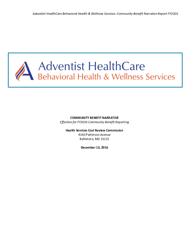 Get the free Community Benefit Narrative Report FY2016 - hscrc