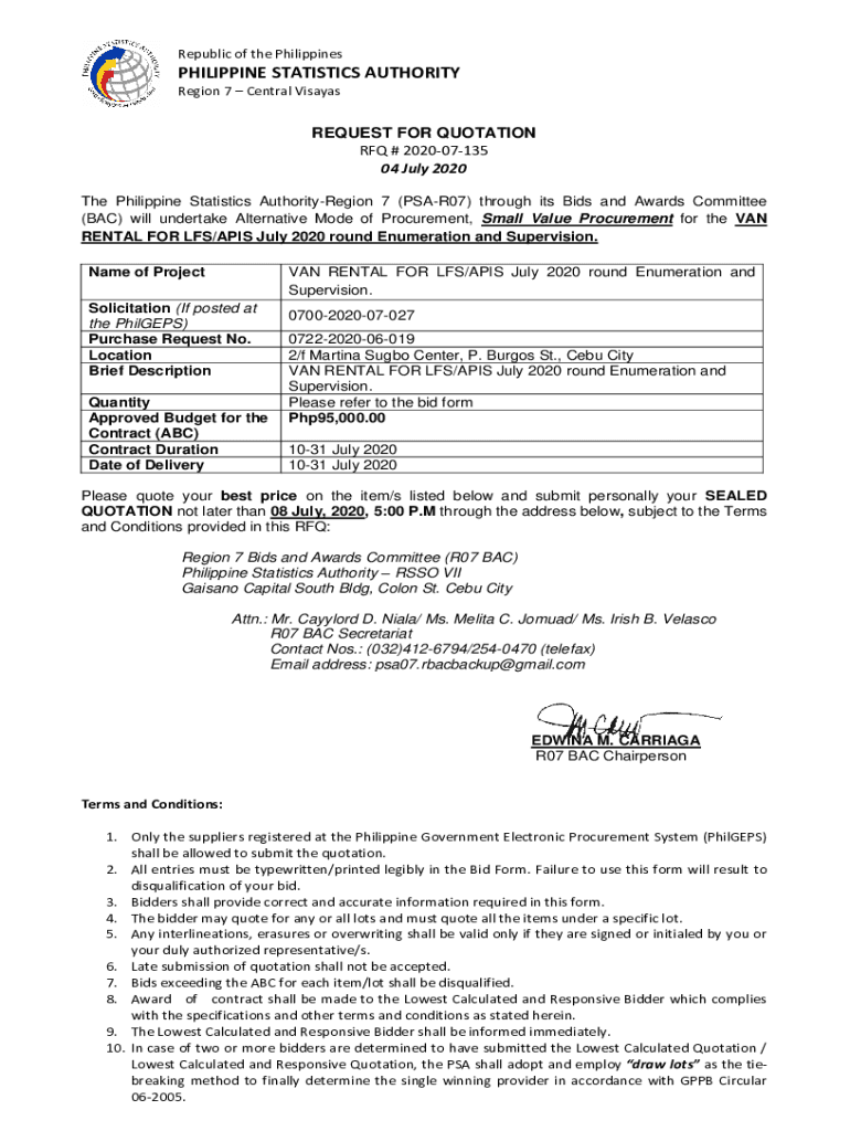 Region 7 Central VisayasREQUEST FOR QUOTATION