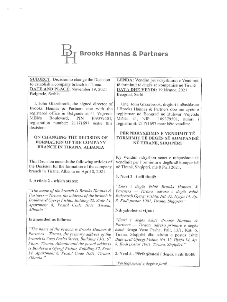 Brooks Hanna's & PartnersSUBJECT: Decision to change the Decision