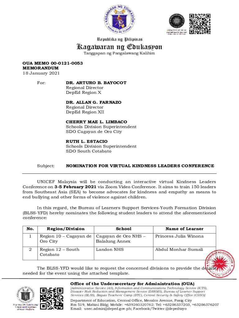 Get the free Nomination of Virtual Kindness Leaders Conference