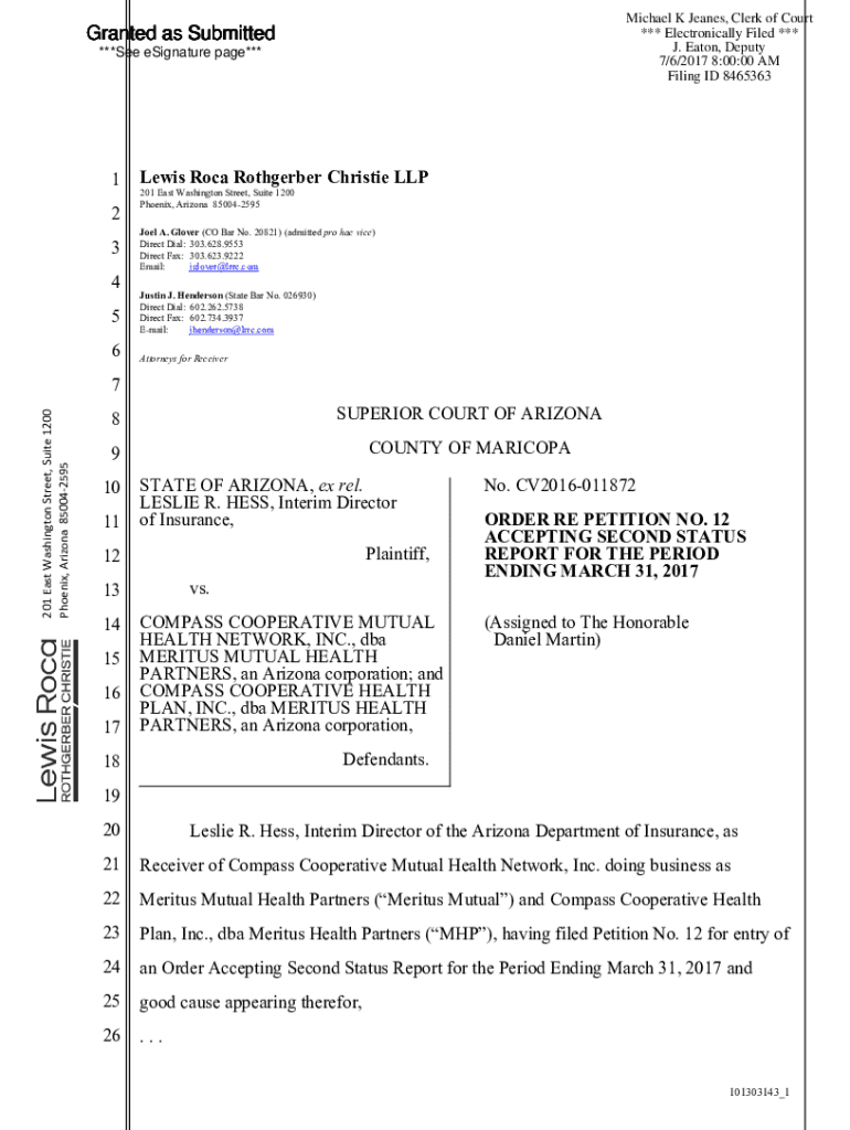 Michael K Jeans, Clerk of Court *** Electronically Filed *** J. Eaton, Deputy 7/6/2017 8:00:00 AM Filing ID 8465363Granted as Submitted ***See signature page***1 2 3 4 5 6Lewis Rock Rothgerber Christie