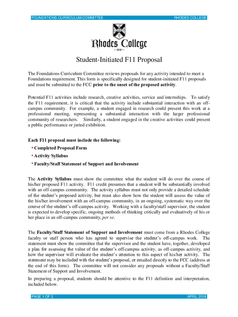 Get the free Student-Initiated F11 Proposal - Rhodes College - express rhodes