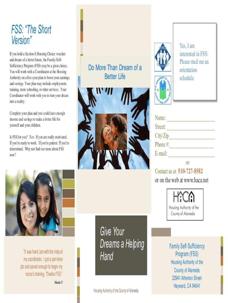 FSS: The Short Version If you hold a Section 8 Housing Choice voucher and dream of a better future, the Family Self-sufficiency Program (FSS) may be a great choice. You will work with a Coordinator
