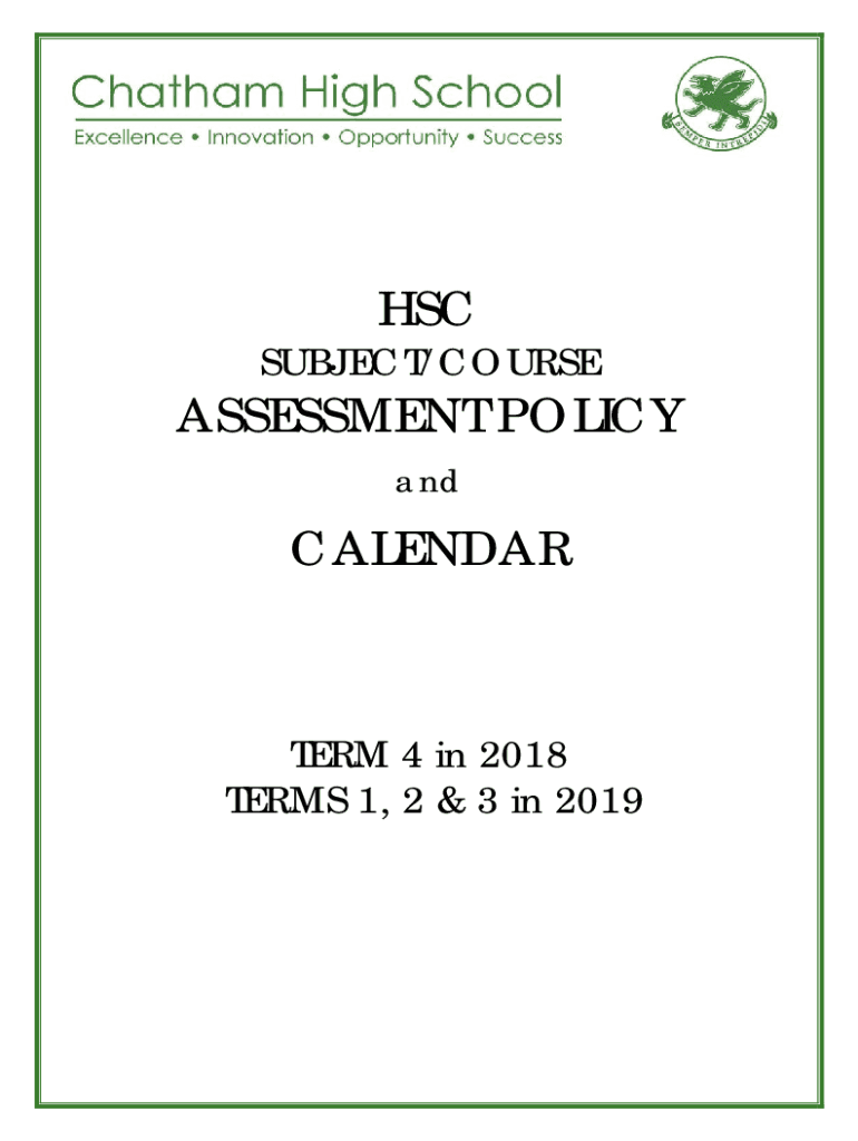SUBJECT/COURSEASSESSMENT POLICY andCALENDARTERM 4 in 2018 TERMS 1, 2 & 3 in 2019Contents Contents .................................................................................................................................................