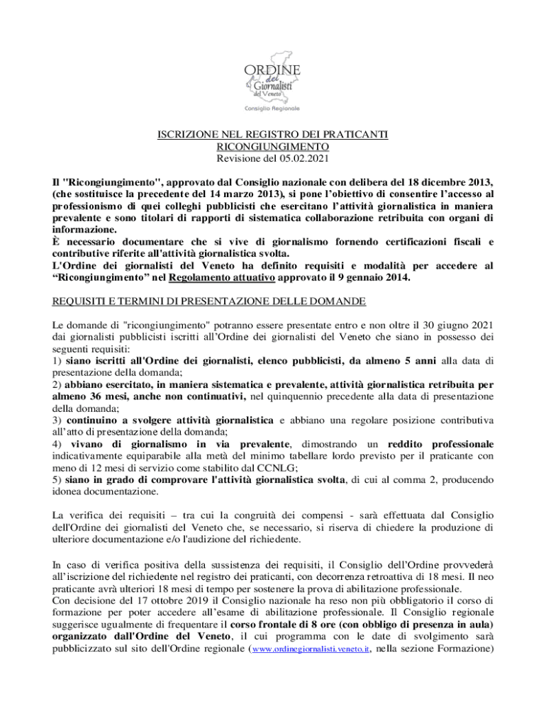 Ottieni il gratuito iscrizione nel registro dei praticanti