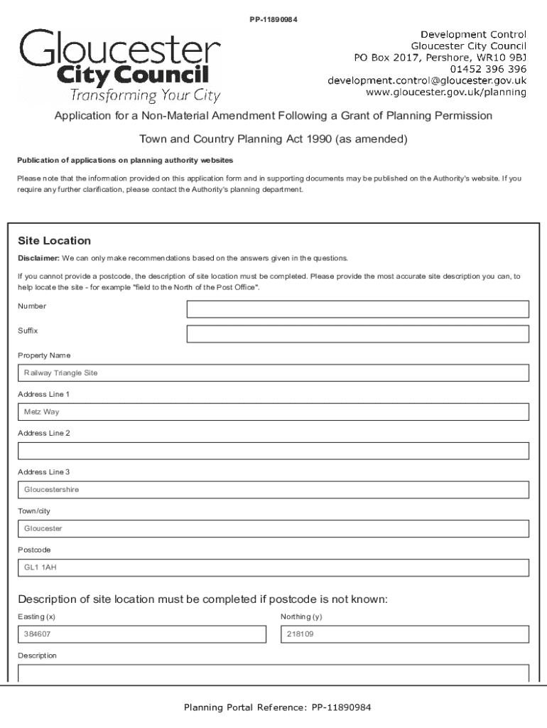 Get the free Non-material amendments to planning applications