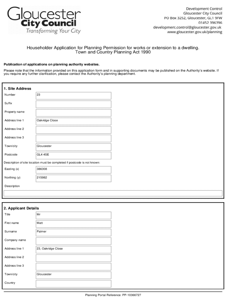 Householder Application for Planning Permission for works or extension to a dwelling. Town and Country Planning Act 1990 Publication of applications on planning authority websites. Please note that