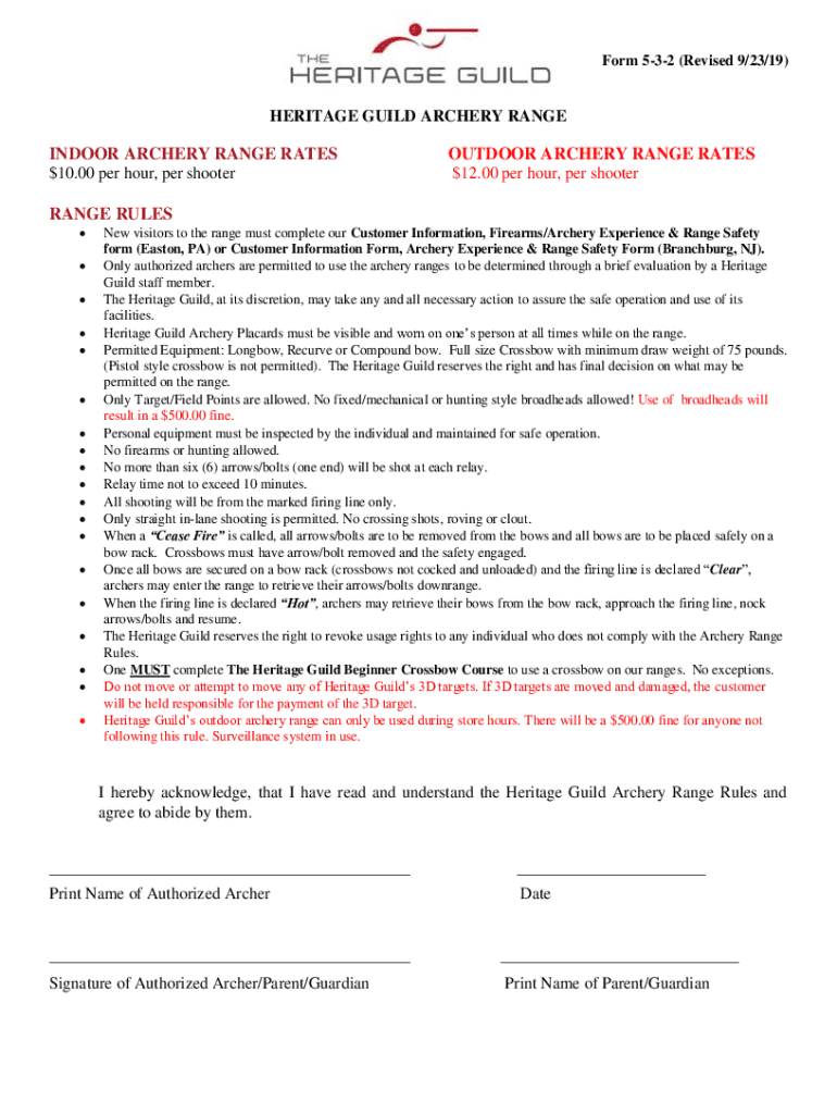 Form 532 (Revised 9/23/19)HERITAGE GUILD ARCHERY RANGEFINDER ARCHERY RANGE RATES