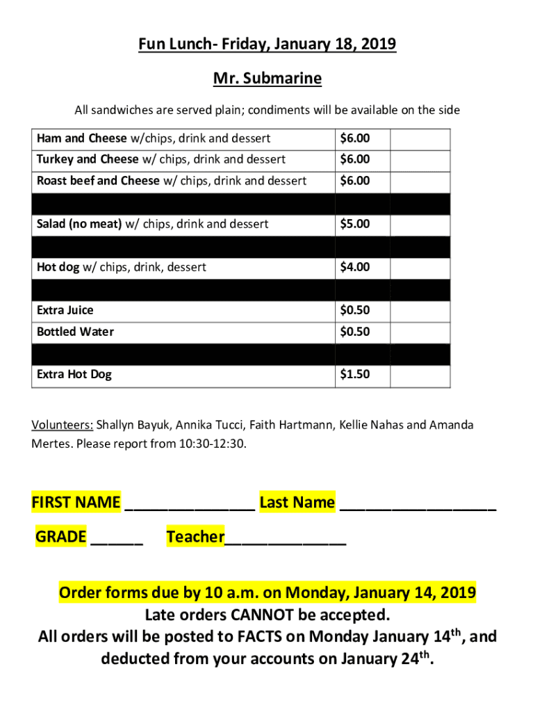 Fun Lunch Friday, January 18, 2019,