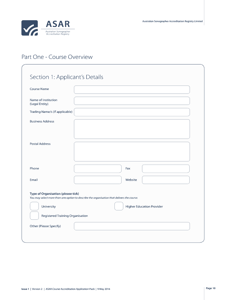 AGAR Australian Sonographer Accreditation Registry Course Accreditation Application Pack FS520622 Australian Sonographer Accreditation Registry Limited GPO Box 7109 Sydney NSW 2001 Telephone: (02)