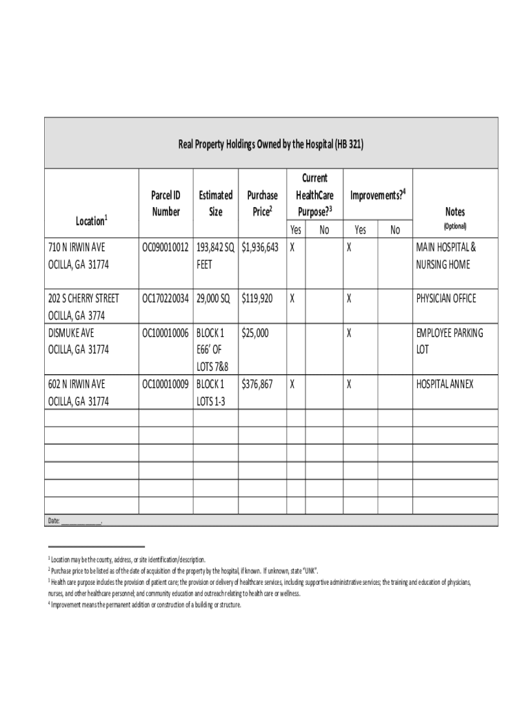 Get the free Real Property Holdings Owned by the Hospital (HB 321 ...