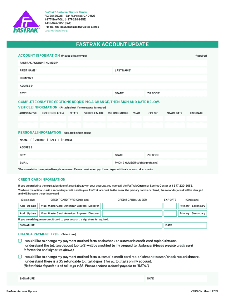 bayareafastrak.orgFASTRAK ACCOUNT UPDATE