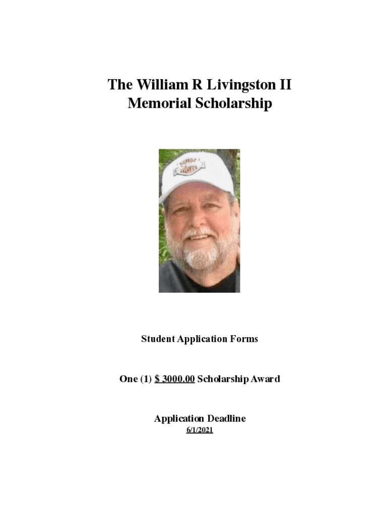 Student Application Hormone (1) $3000.00 Scholarship AwardApplication Deadline6/1/2021The William R Livingston II Memorial ScholarshipDescription of Award The William R Livingston Memorial Scholarship
