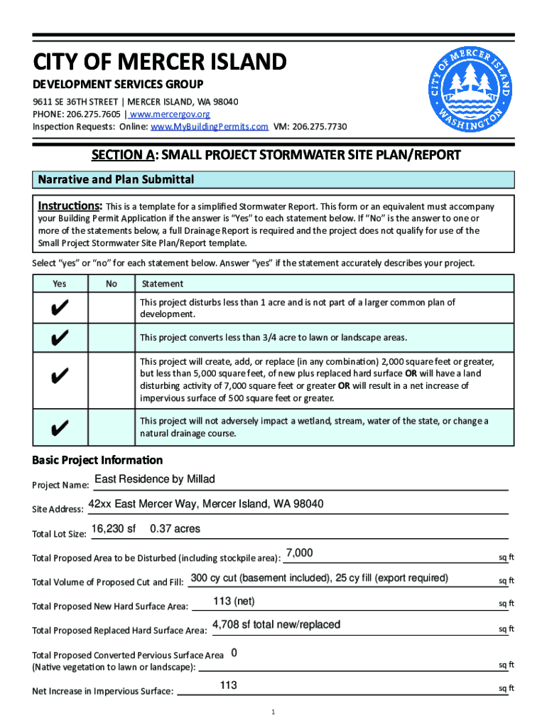 CITY OF MERCER ISLAND DEVELOPMENT SERVICES GROUP9611 SE 36TH STREET | MERCER ISLAND, WA 98040 PHONE: 206.275.7605 | www.mercergov.org Inspection Requests: Online: www.MyBuildingPermits.com VM: 206.275.7730SECTION