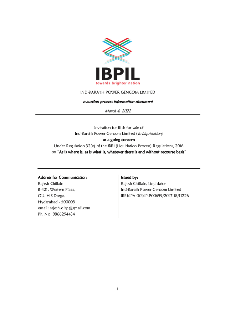 INDBARATH POWER GEN COM LIMITEDeauction process information document