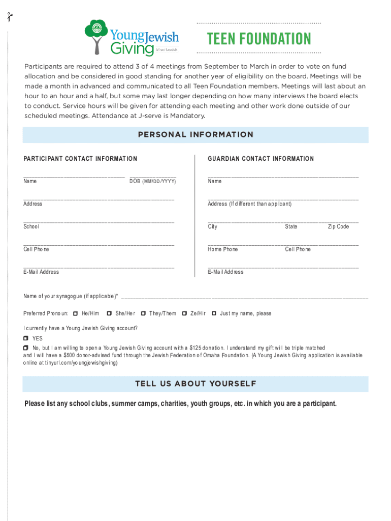 YoungGivingbnai tzedekTEEN Foundation Young Jewish Giving Teen Foundation (JTF) is an excellent way to
