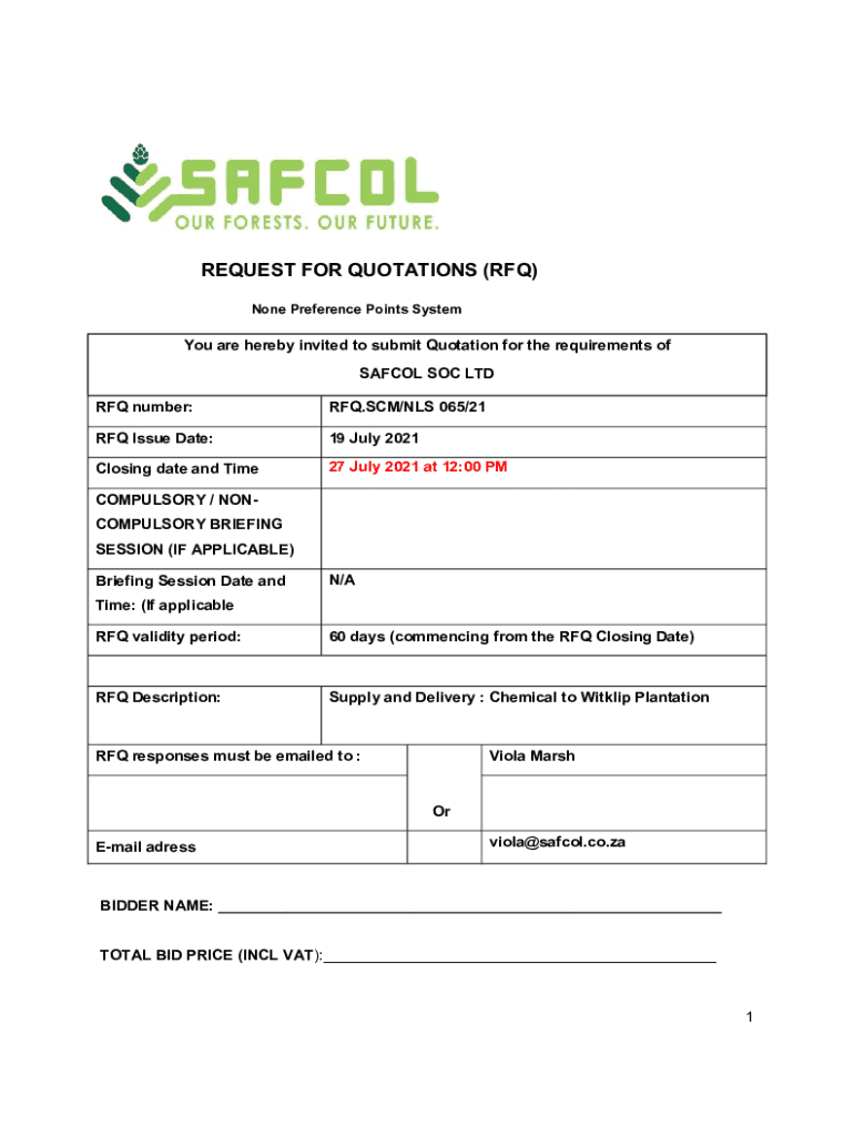 Get the free RFQ (Request for Quotation) - sa-tender.co.za