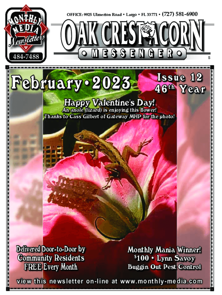 MMM O NTH LY M E Diameter e l s w e N 4847488OAK CREST ACORN OFFICE: 9925 Fullerton Road Largo FL 33771 (727)5816900 M E S S E N G E R Issue 12 4 6th Y e a February 2023Happy Valentine\'s Day! An