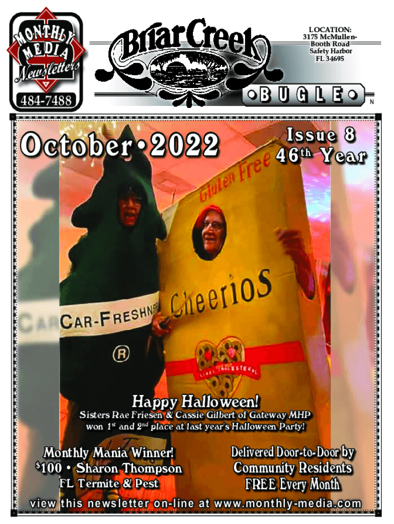 MMM O NTH LY M E DISLOCATION: 3175 McMullenBooth Road Safety Harbor FL 34695stter e l s w e NB U G L E 4847488Issue 8 4 6th Y e an October 2022Happy Halloween! Sisters Rae Friesen & Cassie Gilbert