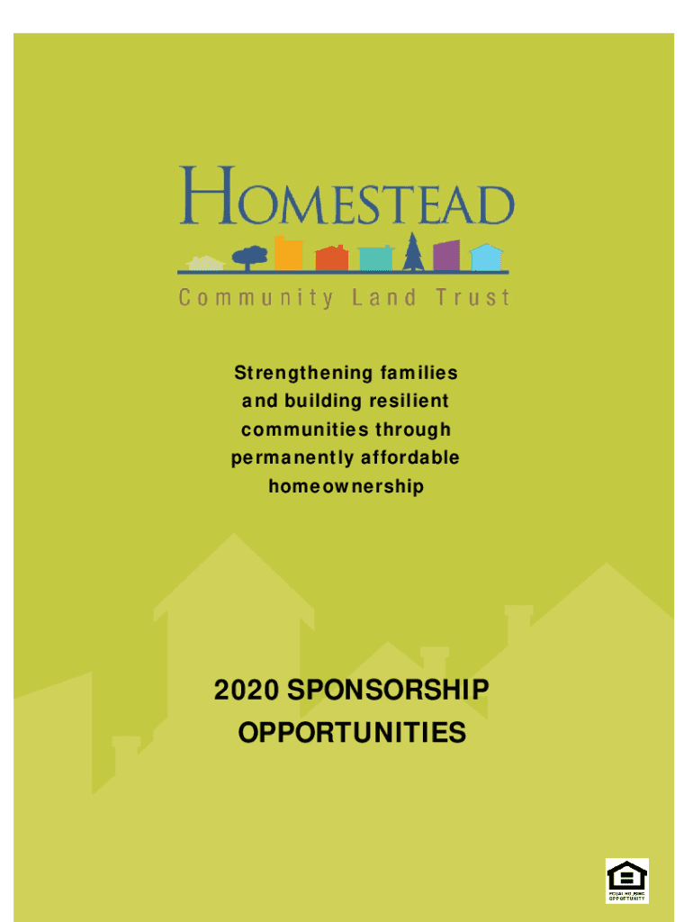 Strengthening families and building resilient communities through permanently affordable homeownership2020 SPONSORSHIP Opportunities Put the Dream of Homeownership Within Reach Homestead Community