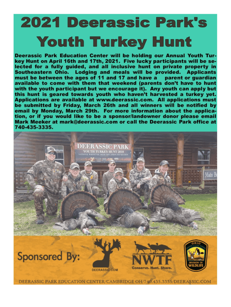 National Whitetail Deer Education Foundation & Drastic Park Education Center Phone: (740) 4353335 Fax: (740) 4353338 14250 Cadiz Road, Cambridge, Oh 437252021 Drastic Park Youth Turkey Hunt The National
