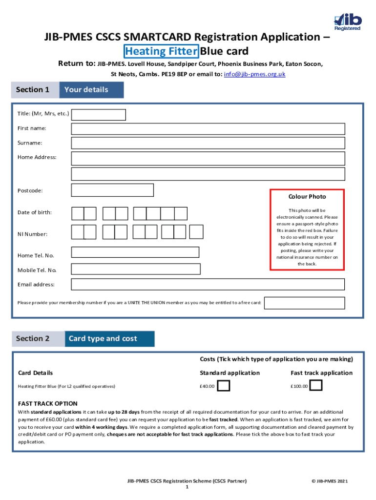 Once approved, obtain your heating fitter blue card and keep it updated as required