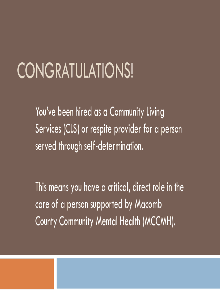 CONGRATULATIONS! You've been hired as a Community Living Services (CLS) or respite provider for a person served through self-determination. This means you have a critical, direct role in the care