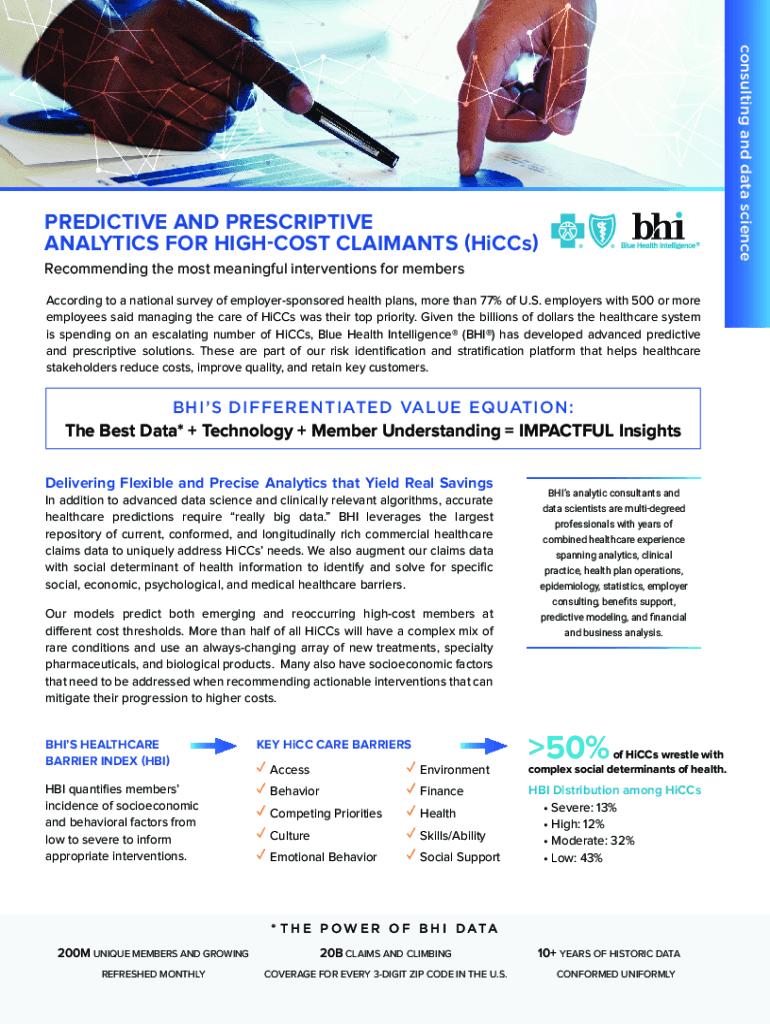 Consulting and data sciencePREDICTIVE AND PRESCRIPTIVE ANALYTICS FOR HIGHEST CLAIMANTS (Hicks) Recommending the most meaningful interventions for members According to a national survey of employer
